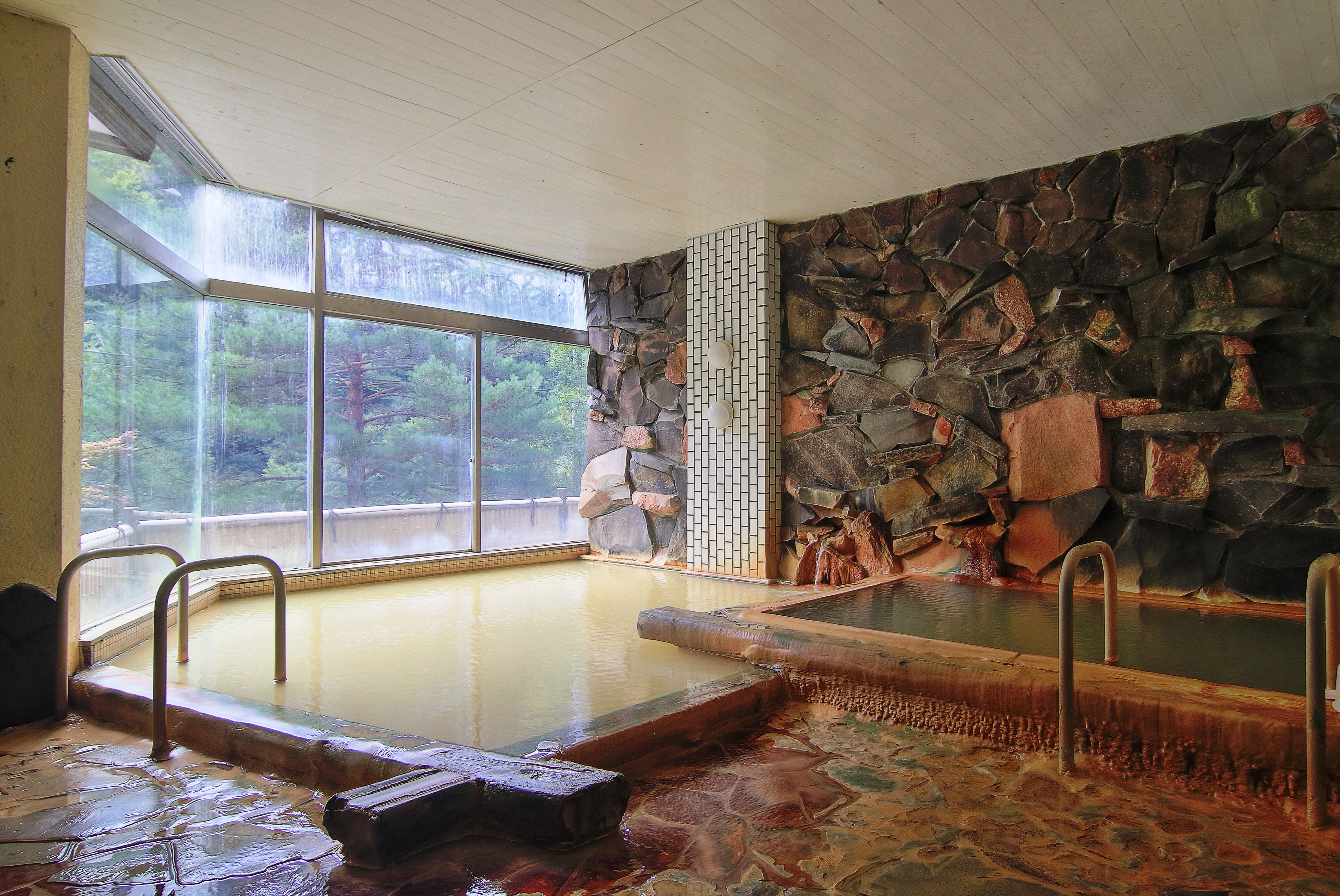 • Japan Tourism / Visitors Relax in Radium Hot Springs Baths at Masutomi Onsen in Yamanashi Pref., Refresh in Natural Surroundings